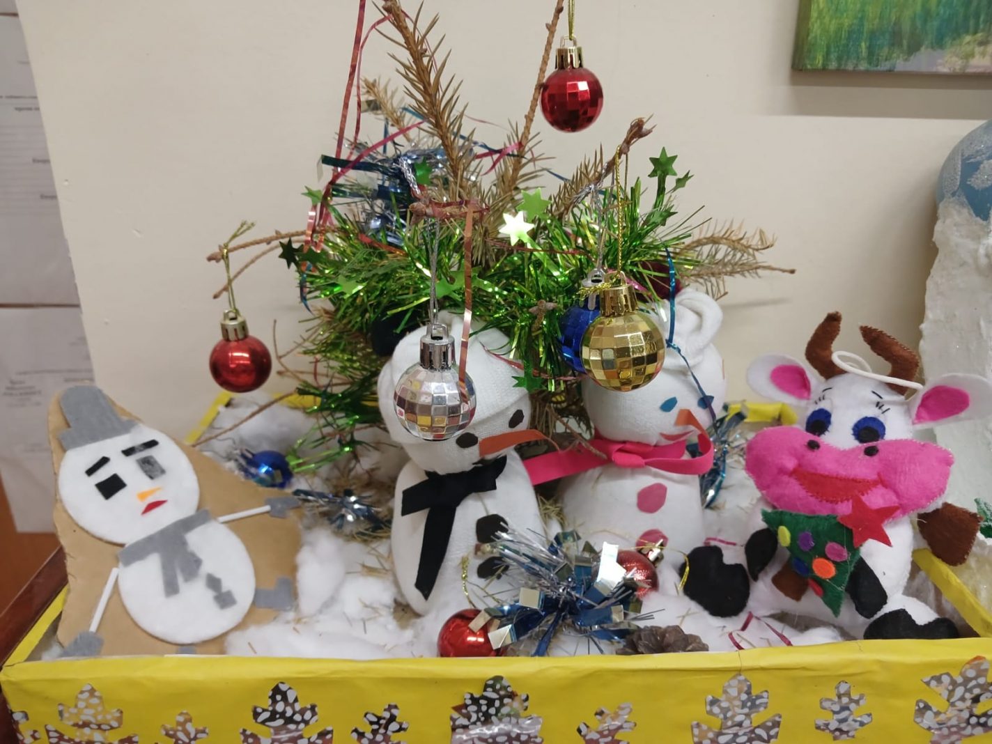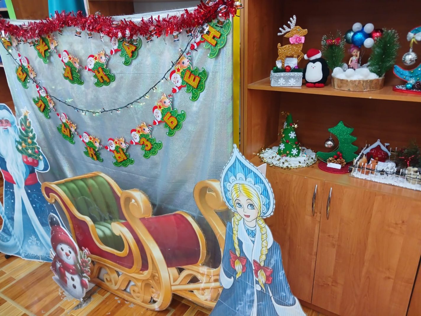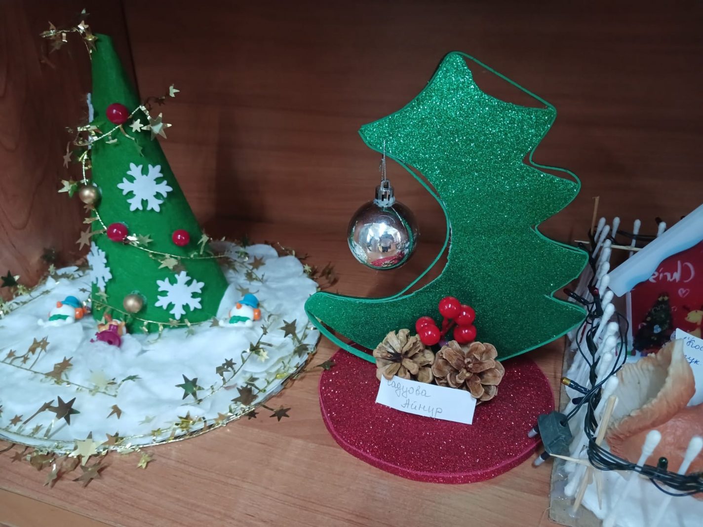 Түрлі шыршалар, көңілді қар адамдары, қар басқан үйлер, әсем ақ марал, тіпті жыл нышаны жылқы да – бәрі балалар мен ата-аналардың қолымен жасалған.
